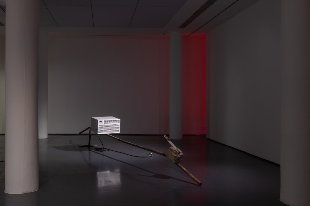 Many of the works are bound up with memory. I grew up with a window air conditioner at home—cheap, easy to install—and I still recall its droning “rumble” vividly. Its appearance in the work arose when I once encountered a black-and-white product photograph of such a unit, which jolted me into recognising it as both a language and material. Another artist I greatly admire, Ima-Abasi Okon, has used a row of industrial air conditioners as multi-channel sound players. I liked this piece enormously; perhaps subconsciously I also wished to underscore the air-conditioning unit as a body.